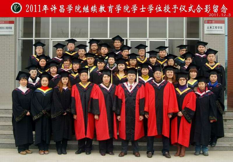 太阳成集团tyc151cc党总支书记王中立宣读了《关于授予王培丽等44名2011届成人高等教育本科毕业生学士学位的决定》(院政教〔2011〕8号),宣布了学士学位获得者名单。与会领导为学位获得者颁发证书并扶正流苏。会后,身着学士服的学员们在太阳成集团tyc151cc楼前合影留念。